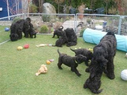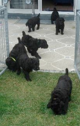 Die Welpen sind nun 8 Wochen alt und das 4.x entwurmt. Sie sind geimpft, haben einen Microchip-Transponder bekommen und natürlich Tierärztlich untersucht und gesund! Unsere Zuchtwartin Frau Götz hat auch ihre Wurfabnahme durchgeführt und war mit allem sehr zufrieden.