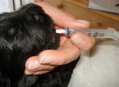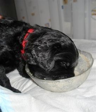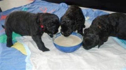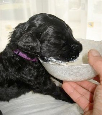 Heute sind die Welpen genau 14 Tage alt. Wir haben sie Heute das 1. Mal entwurmt. Sie haben die Flüssigkeit geschluckt als wäre es Welpenmilch.