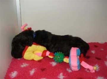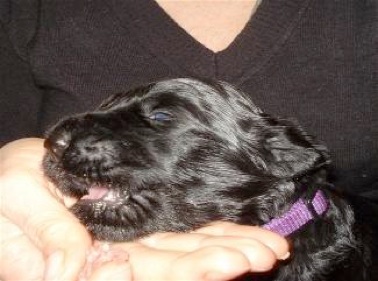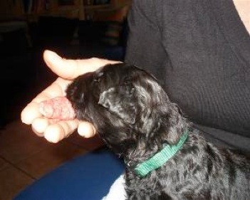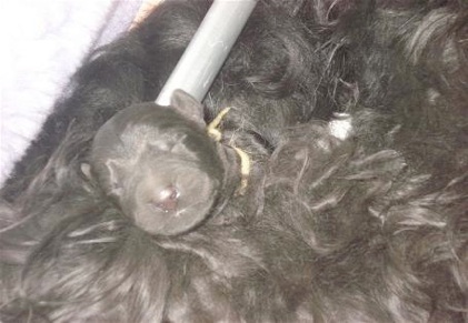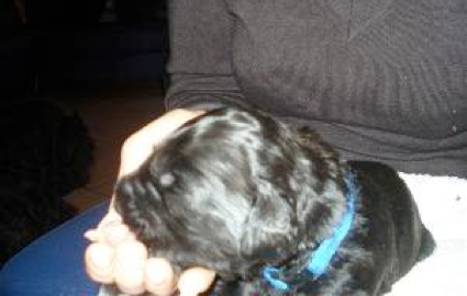 Um genau 03.08 Uhr kam eine Hündin "Rosa" die liebevoll von Leia versorgt wurde. Mit einer Ruhe und Selbstverständlichkeit, als hätte sie es schon öfters gemacht. Nach einer längere Pause kam Rüde "Blau". Der Rüde war nicht zu überhören und protestierte heftig gegen das "Abrubbeln" mit dem Handtuch.