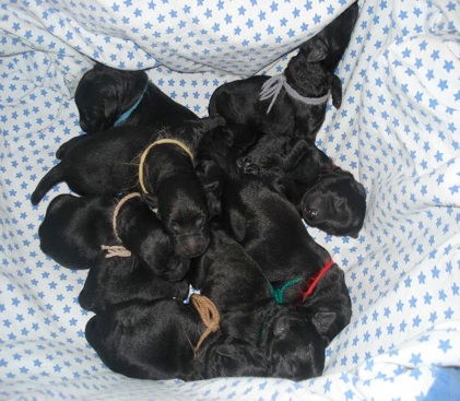 Wir freuen uns über 6 gesunde Lausbuben und 3 gesunde hübsche Mädchen! Der Mutterhündin geht es sehr gut.