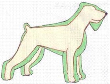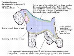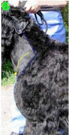 Der Kopf sollte die Form eines Ziegelsteines haben (von oben betrachtet), und so getrimmt sein, dass der Übergang von kurzem zu langem Haar stimmt und so ein dekorativer Bart und Schnurrbart entstehen. Von oben gesehen sieht also der Kopf wie ein Ziegelstein aus und von der Seite wie ein Dreieck, welches durch die Backen und den Schnurbart zu einem 90 Grad Winkel geformt wurde.