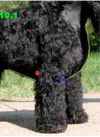 Die Hüfte (Beginn des Schweifes) sollte sanft in den Schweif übergehen. Sie sollten auf gleicher Höhe stehen. der Schwanz sollte weder über noch unter der oberen Linie an der Hüfte sein.